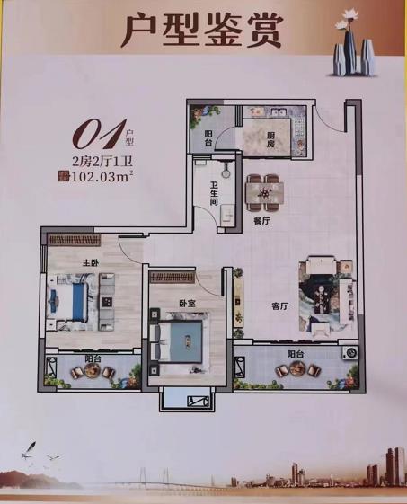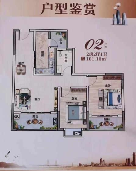 两房:101-102㎡(两房三阳台朝南)