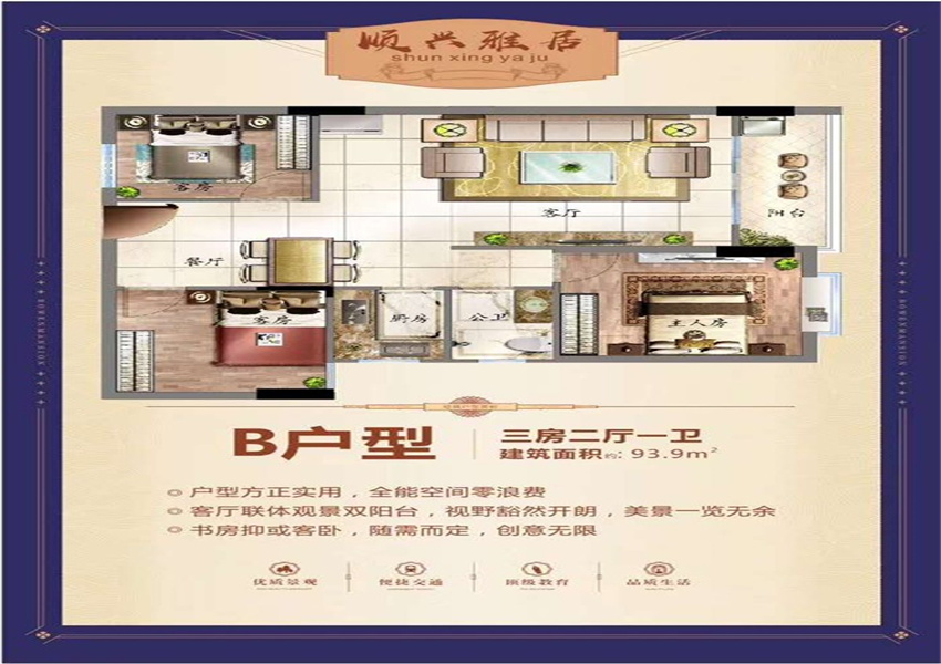 三房两厅:96㎡~117㎡