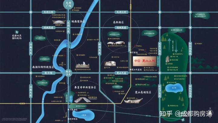 中信城开·麓山上院坐落于麓山大道北侧,紧邻蓉遵高速,距6号线麓山大道站约750米。