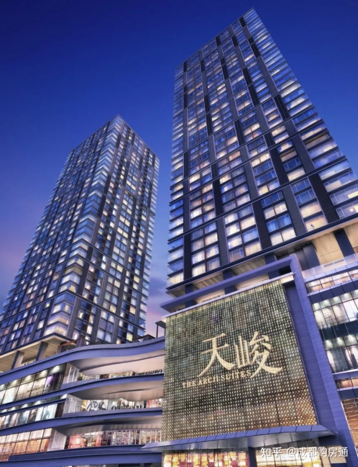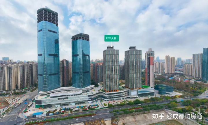ICC天峻是集商业性、住宅为一体的楼盘,下面圆弧部分为ICC商业性综合体,上面是ICC天峻住宅,共有两栋楼,总层高42层,高度为150米。