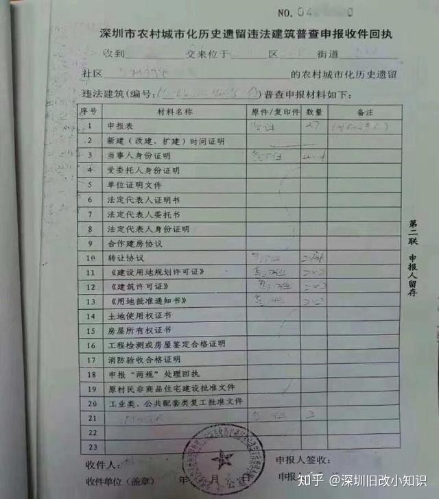 8、《深圳市农村城市化历史遗留违法建筑普查申报收件回执》