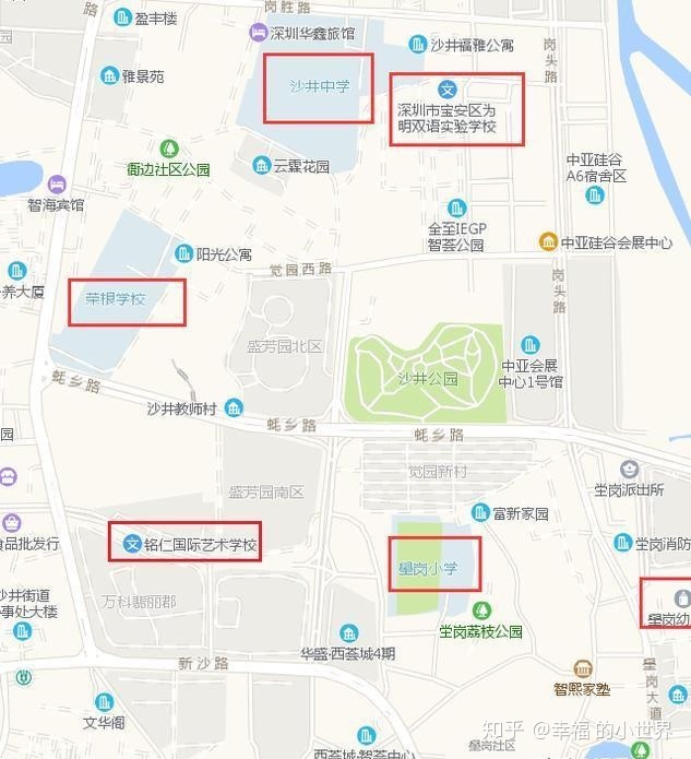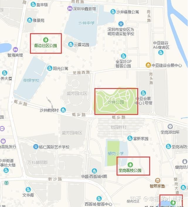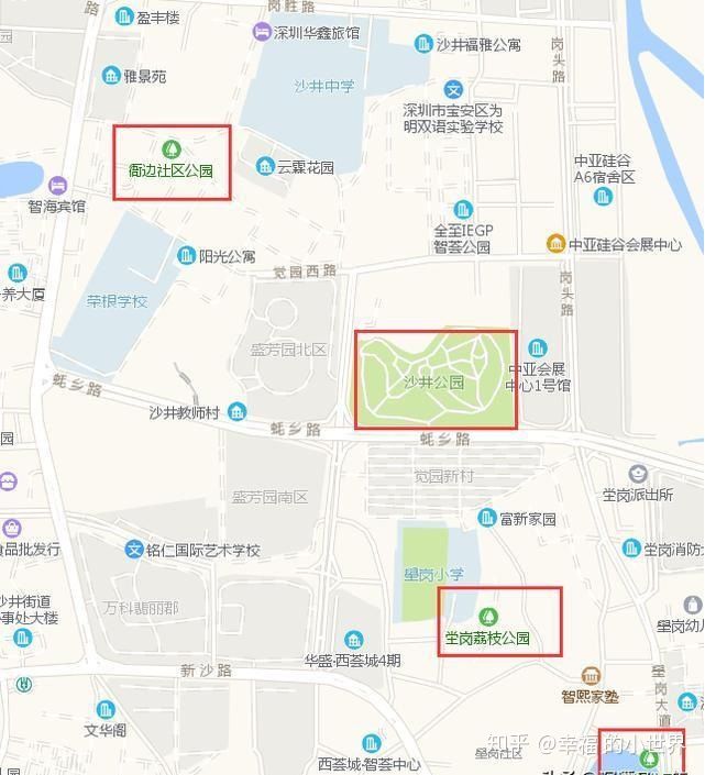 盛芳园周边学校除了小区本身的配套外,盛芳园旁边是沙井公园,基本上能用0距离形容了。如果不想在小区内逛,去沙井公园跑跑步,溜溜娃还是非常方便。稍微远一点,还有壆岗荔枝公园,壆岗公园等等。