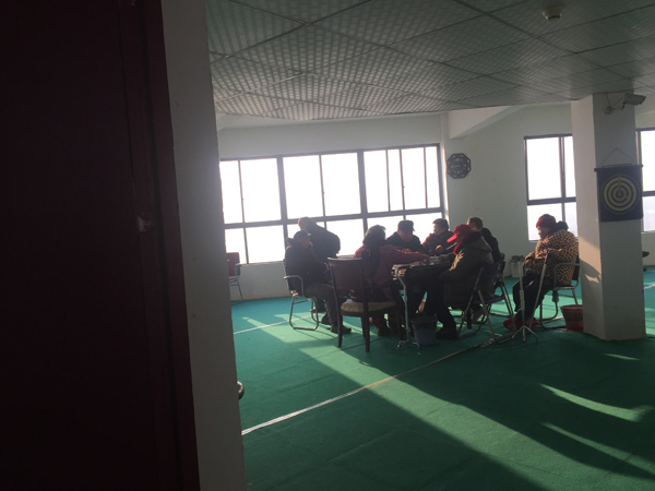 服务站共五层,设有保安室、餐厅、医疗室,以及于泽县、豪华中庭若干。在三楼会议厅,不少老人家正围坐一圈打麻将,有说有笑。