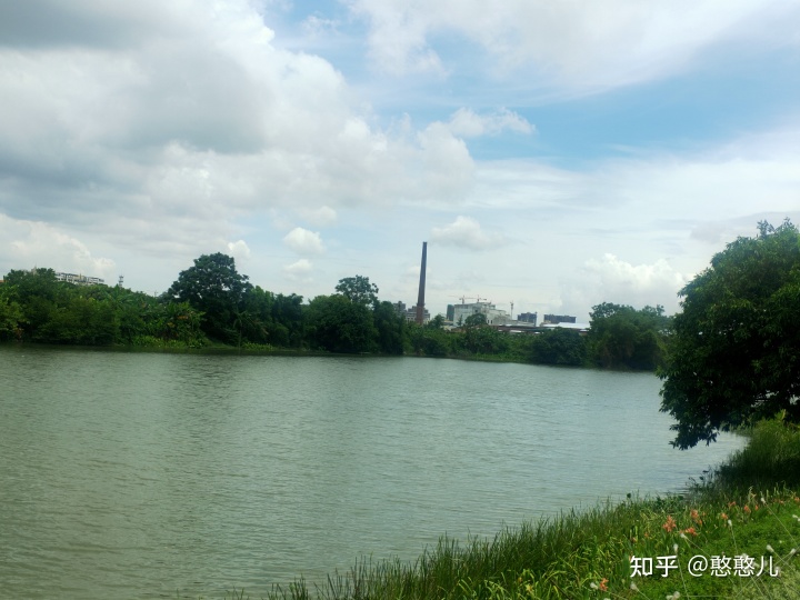 大门口的河对面就看到烟囱和厂房了,这难道就是地产所说的滨江美景吗?哈哈哈