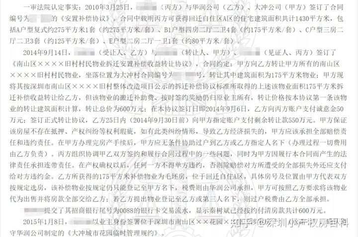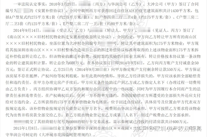 关于这两难题,我找出两个非常具有威胁性的事例:我在裁判员文书网上找出了两个大冲的迁离房买卖并有造成了纷争的事例【(2018)粤03民终10838号】,看看她们分了多少房子,又是怎么造成的纷争,高等法院又是如何裁决的。正好一举多得,完美的把上述难题给解决了。