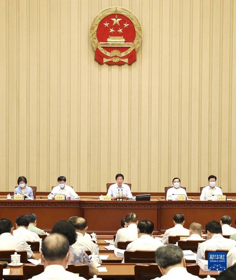 6月21日,十四届全国人民代表大会常务常务委员会第四十二次全会在人民大会堂举办第二次全体全会。栗战书常务副委员长策划。中新社记者 贾立君 摄