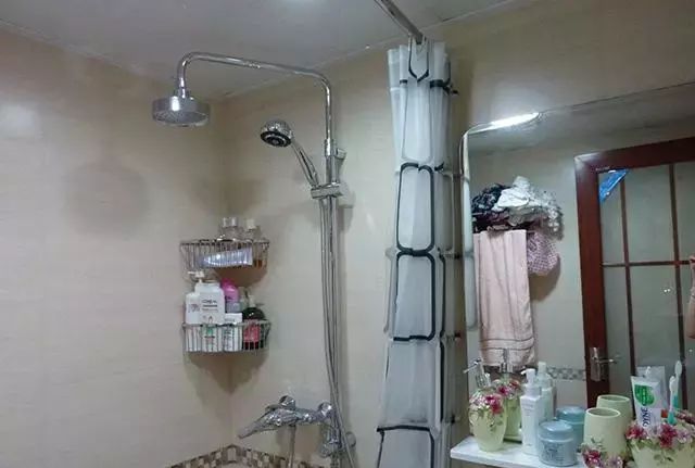 卫生间面积不大,没装淋浴房,浴帘作为干湿分离。